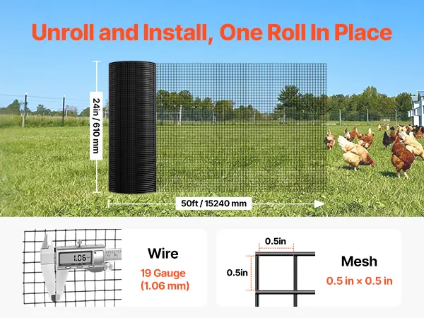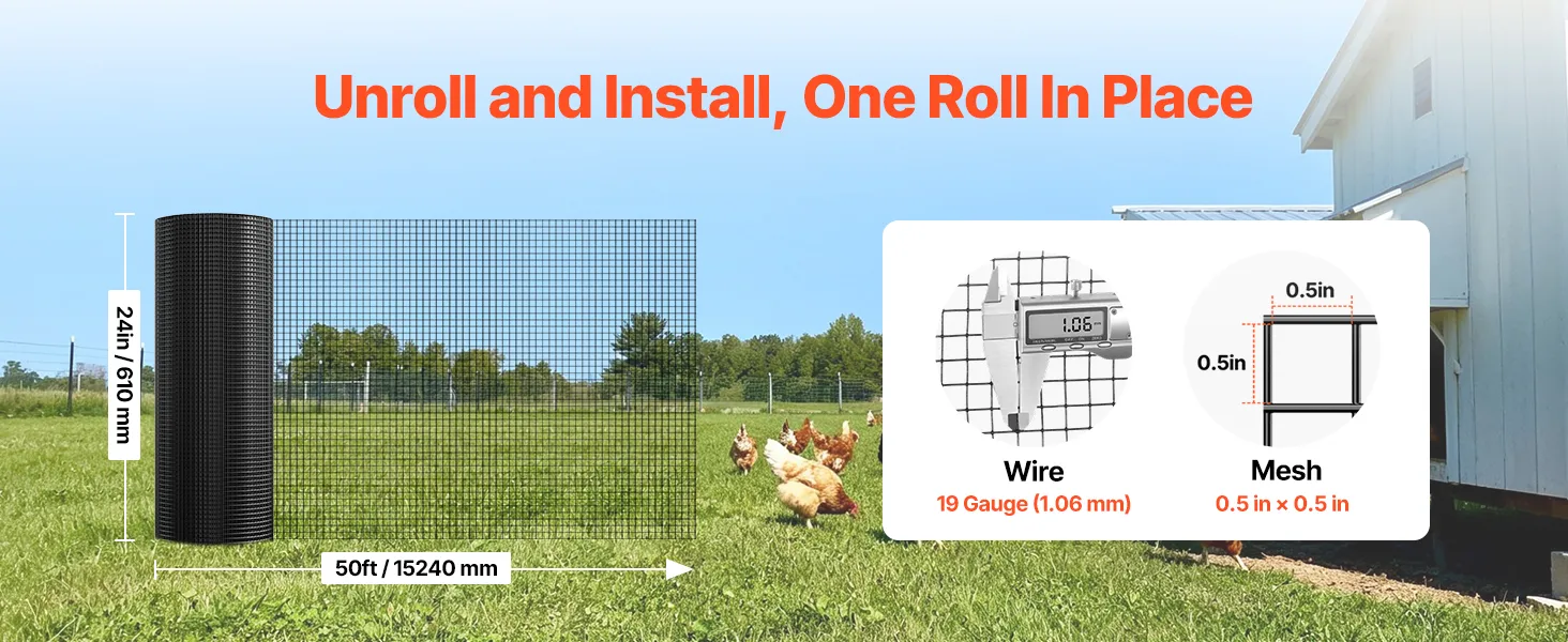 Precision Sizing: Manufactured to strict US standards for consistent, reliable dimensions. Minimizing installation errors and ensuring seamless fence connections, our galvanized wire mesh roll fits various outdoor projects. Size: 24 in x 50 ft / 610 x 15240 mm
