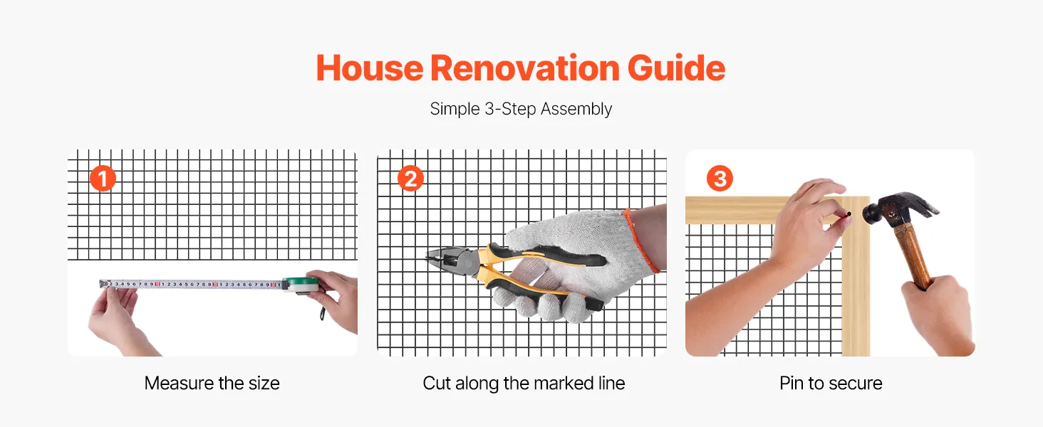 Easy Installation: Lightweight roll design with included steel wire pliers and cut-resistant gloves. No extra tools required. The welded wire mesh roll setup can be completed in 15 minutes, making it simple even for first-time users