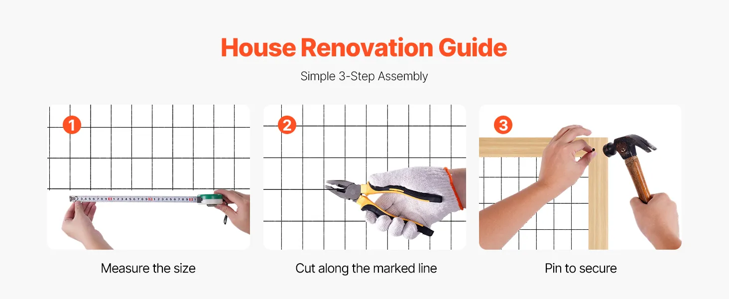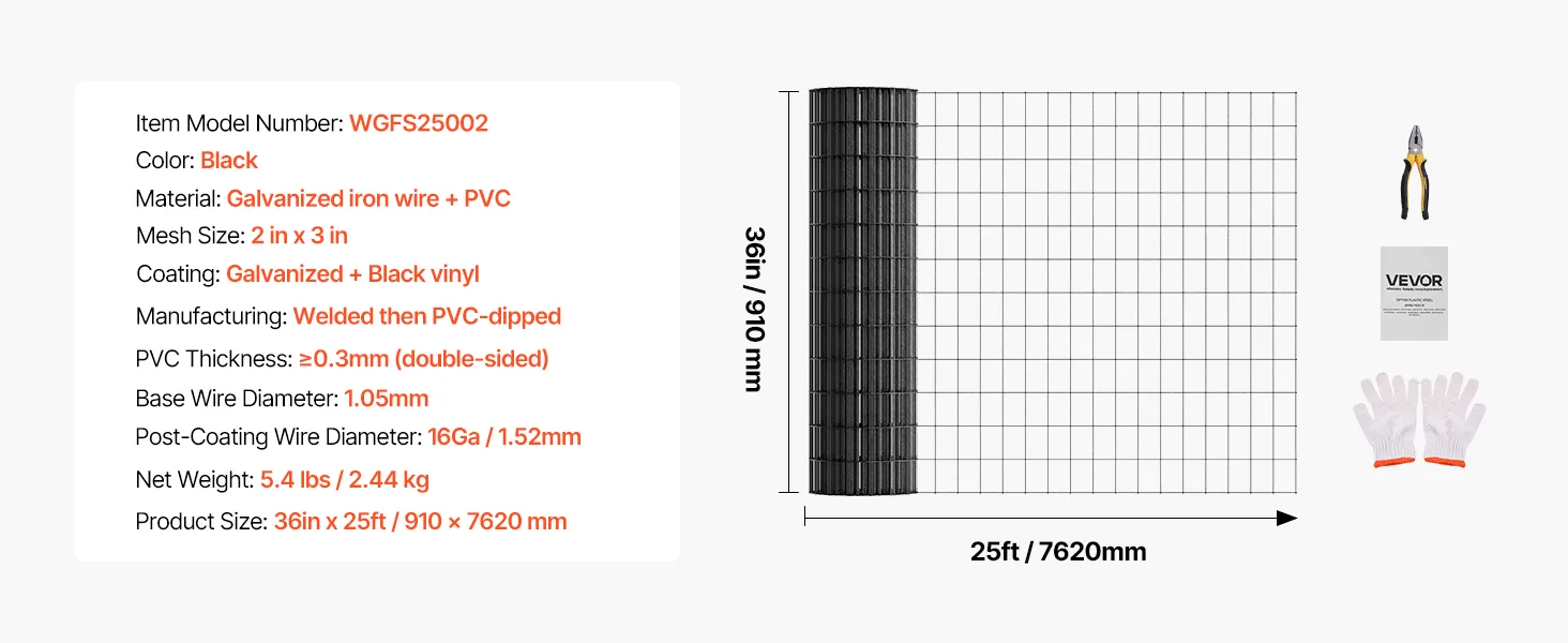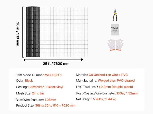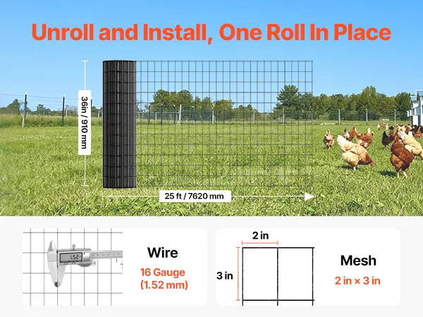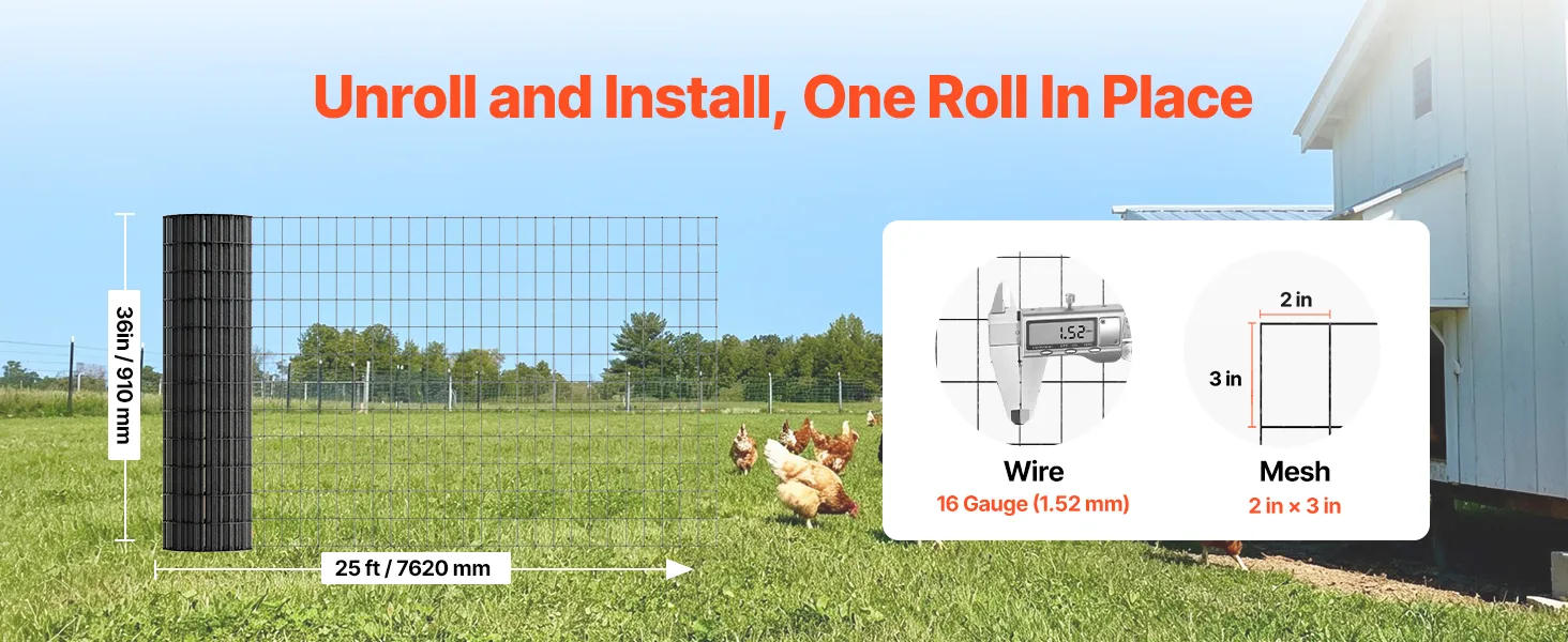 Precision Sizing: Manufactured to strict US standards for stable, reliable dimensions. Minimizing installation errors and ensuring seamless fence connections, our galvanized wire mesh roll easily fits a variety of outdoor projects. Size: 36 in x 25 ft / 910 x 7620 mm