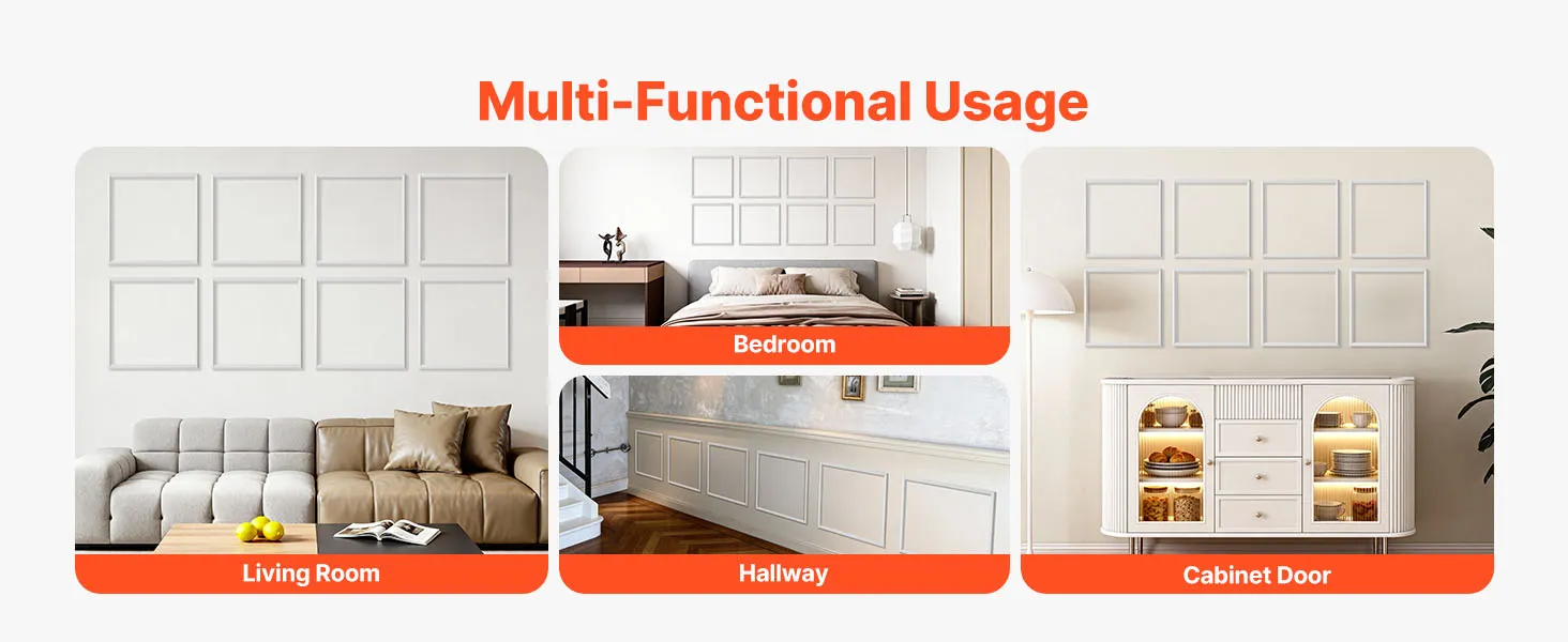 Versatile for Multiple Rooms: This molding trim works with 10+ interior styles, from modern to classic. Use it as wall molding or accent wall panels in living rooms, bedrooms, hallways, or bathrooms to transform plain walls into stylish, elevated spaces