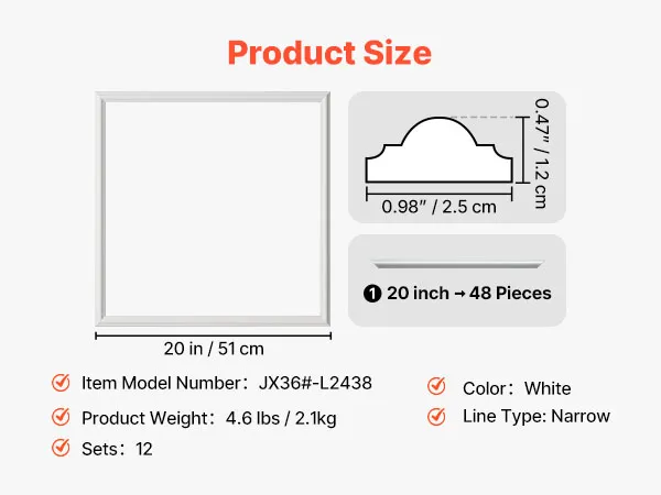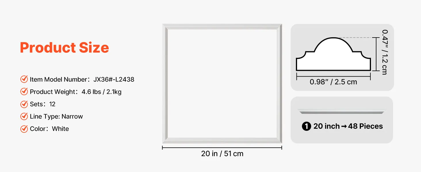 Lightweight Premium Construction: Made from sturdy polystyrene, this wall trim is lightweight yet long-lasting. The molding trim resists damp, warping, and cracking, ensuring stable alignment and reliable indoor performance for years to come