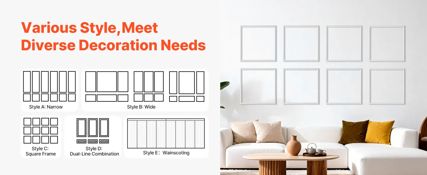 This wall trim molding set includes pre-cut trim molding pieces for a smooth and simple assembly. Whether you’re refreshing a rental apartment over the weekend or upgrading your forever home, every detail is designed to help you achieve magazine-worthy wall molding & trim results on the first try.