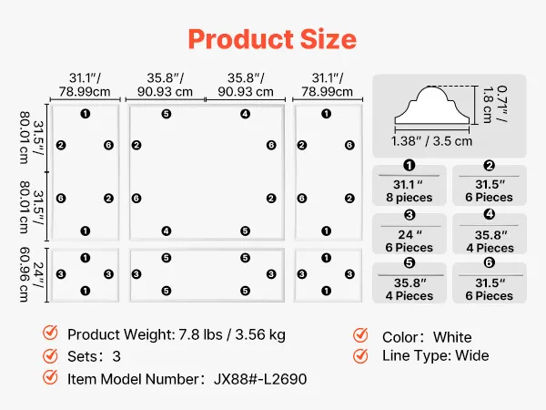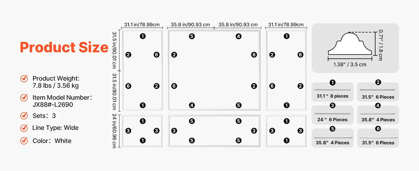 • Versatile for Multiple Rooms: This molding trim works with 10+ interior styles, from modern to classic. Use it as wall molding or accent wall panels in living rooms, bedrooms, hallways, or bathrooms to transform plain walls into stylish, elevated spaces