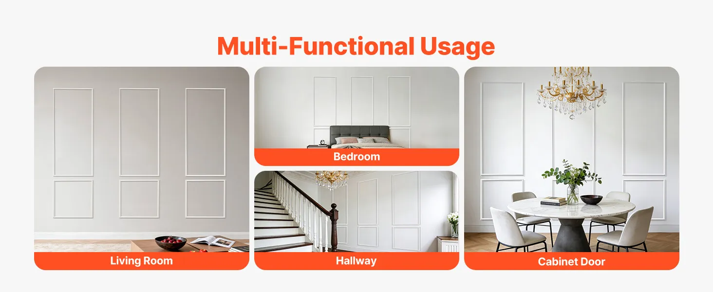 Versatile for Multiple Rooms: This wainscoting panels kit suits 10+ décor styles from modern to vintage. Use the wall molding in kitchens, bathrooms, bedrooms, living rooms, or install it as accent wall panels, backsplashes, or decorative wall trim
