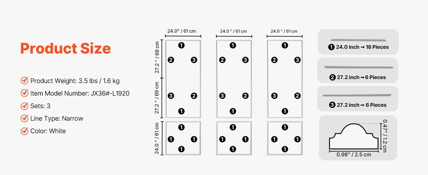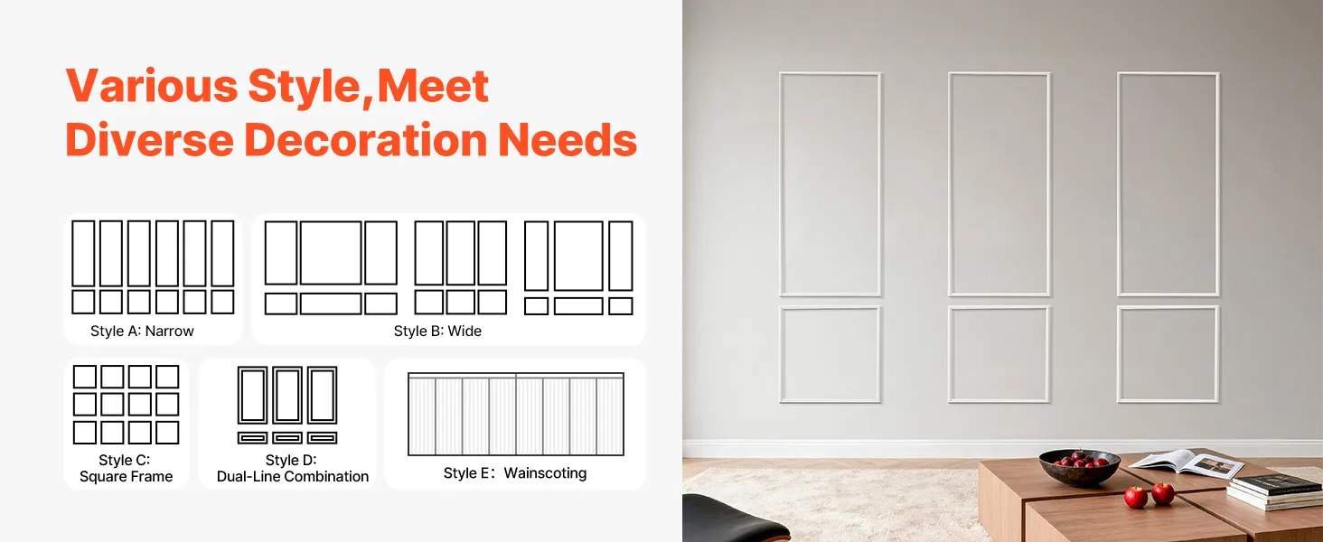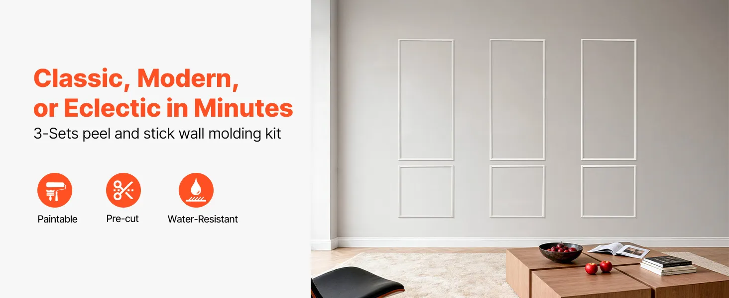 This wall trim molding set includes pre-cut trim molding pieces for a smooth and simple assembly. Whether you’re refreshing a rental apartment over the weekend or upgrading your forever home, every detail is designed to help you achieve magazine-worthy wall molding & trim results on the first try.
