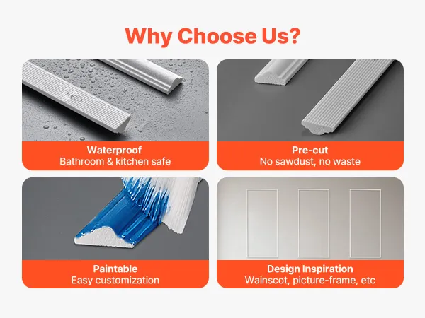 DIY-Ready Paintable Surface: These wainscoting panels feature a smooth, paintable surface for limitless creativity. Customize your wall trim with paint, decals, or décor. Waterproof testing ensures adhesion stays strong even after painting, long-term use