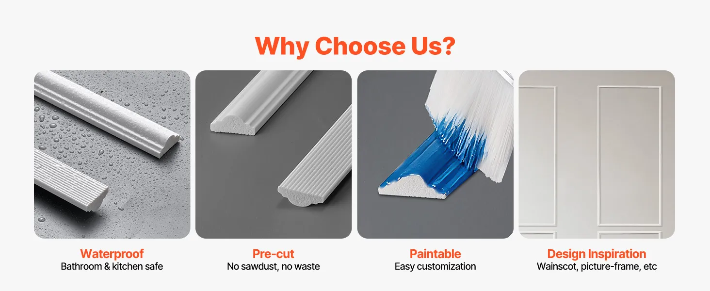Lightweight Premium Construction: Made from sturdy polystyrene, this wall trim is lightweight yet long-lasting. The molding trim resists damp, warping, and cracking, ensuring stable alignment and reliable indoor performance for years to come