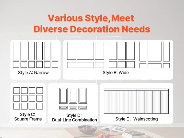 We offer a thoughtfully curated selection of wall moulding styles tailored to specific spaces: classic squares for living rooms, rectangles for hallways, and full wainscot layouts for dining rooms. Each wall molding panel is easy to paint or decorate for a personalized finish.