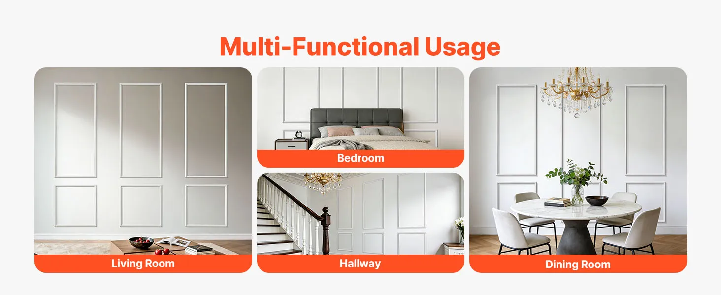 • Versatile for Multiple Rooms: This molding trim works with 10+ interior styles, from modern to classic. Use it as wall molding or accent wall panels in living rooms, bedrooms, hallways, or bathrooms to transform plain walls into stylish, elevated spaces