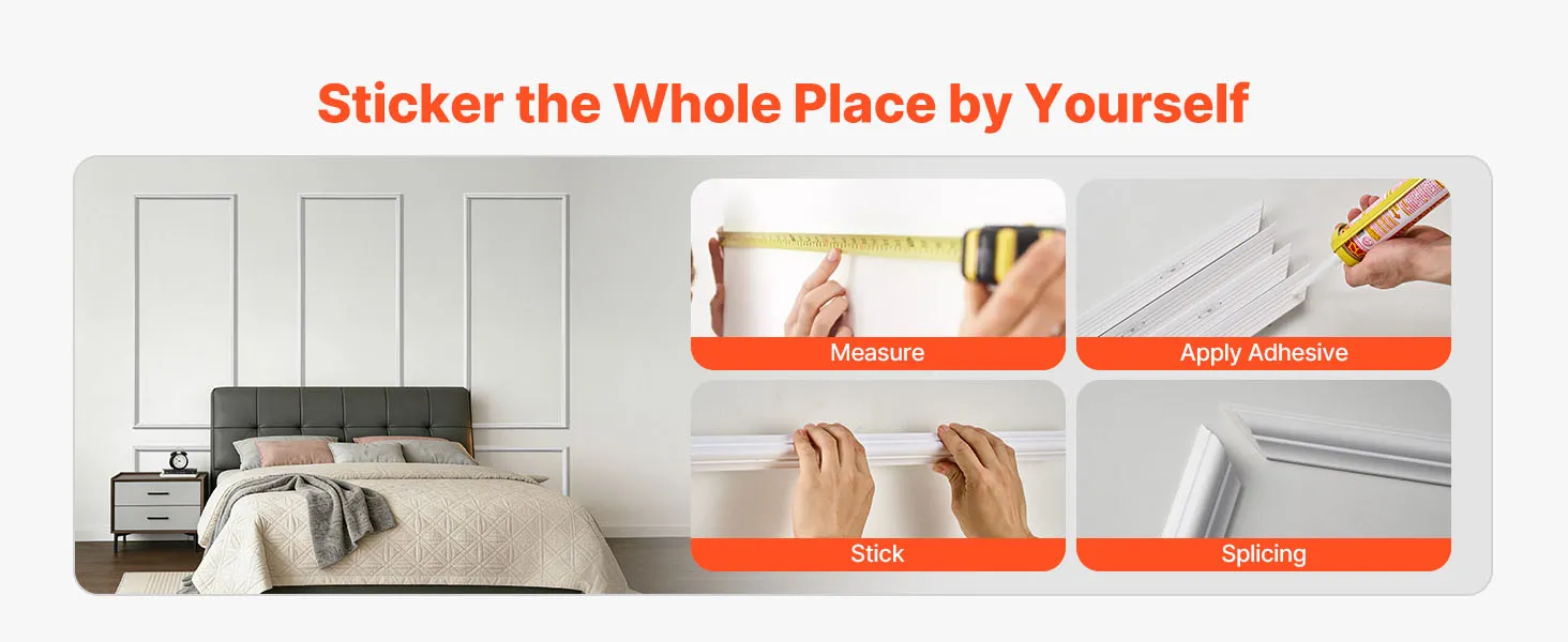 • Pre-Cut for Easy Installation: Each piece of molding trim is machine-cut with precise angles, allowing you to install without cutting or measuring. Apply with adhesive for fast, mess-free setup, ideal for renters needing removable accent wall panels