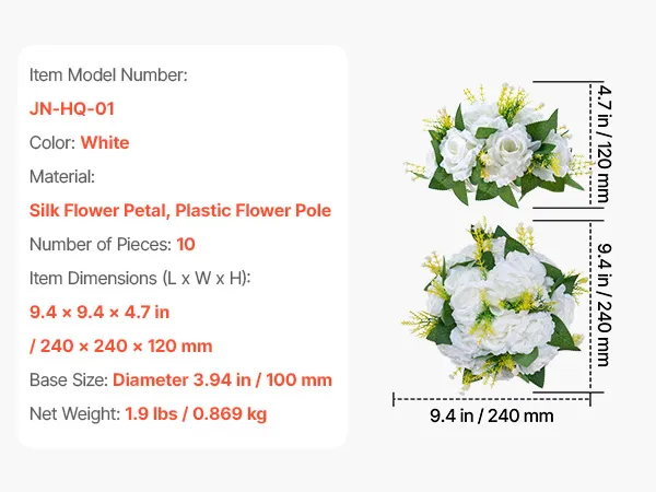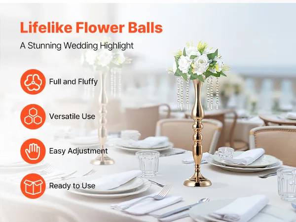 Ready to Display: Each set of flowers for centerpieces includes 10 half-sphere faux flower balls with stable bases. Instantly arrange on tables, vases, or stands—no tools needed. NOTE: Slight color variations may occur due to photography lighting or screen displays