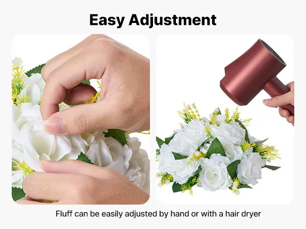 Q2: Does it come fully assembled? How do I fluff it up after unpacking? A2: Yes, each flower ball is fully pre-assembled for your convenience. Due to packaging, slight compression may occur. Simply use a hairdryer on low heat for a few seconds and gently spread the petals by hand to restore its shape.