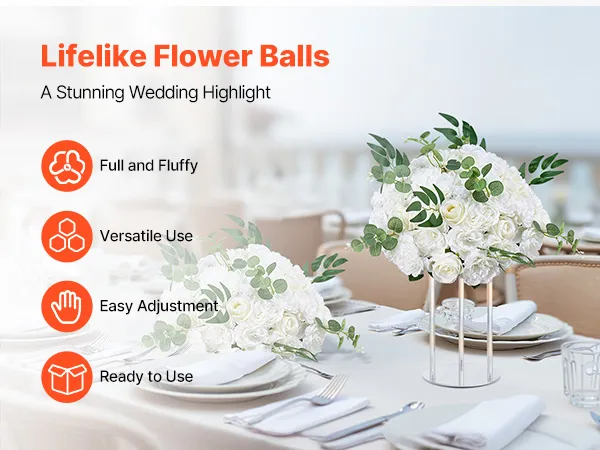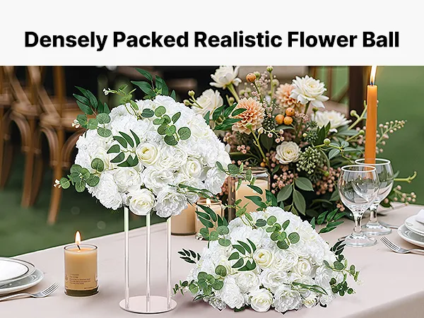 Our flower balls for centerpieces feature high-density blooms for lifelike fullness in natural hues. No assembly needed, they are ready to use. You can maintain its shape by hand-fluffing or quick blow-drying. It elevates weddings, parties, tabletops, and home décor with elegant sophistication.