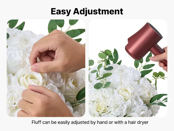 Q2: Does it come fully assembled? How do I fluff it up after unpacking? A2: Yes, each flower ball is fully pre-assembled for your convenience. Due to packaging, slight compression may occur. Simply use a hairdryer on low heat for a few seconds and gently spread the petals by hand to restore its shape.