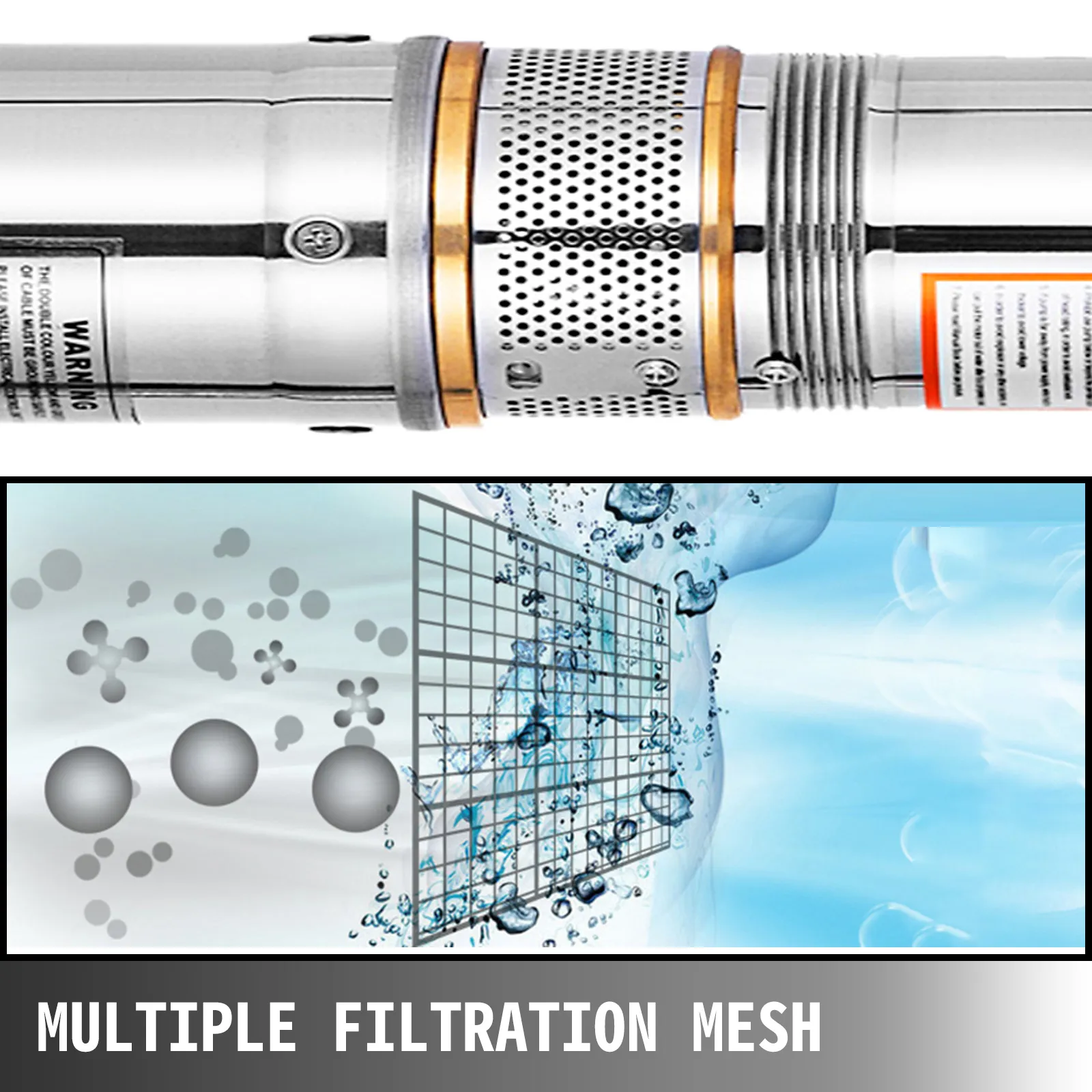 This submersible pump, manufactured from 304 stainless steel, is a durable well pump that will keep you in use for a couple of years. In addition, this deep well pump provides you an advanced flow rate, producing a consistent flow up to quite a depth under the surface. With this deep well pump, you can quickly and conveniently get water even from greater depths.