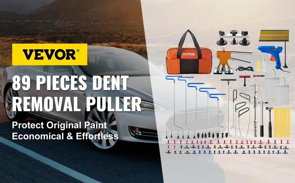 Totally 89 pcs tools, including all classic and popular dent puller tools. These pullers are made from high-quality metal and are durable enough to last you for years. 66 different sizes of dent puller tabs are designed with a new texture from specially hardened material that makes it very strong. Effectively and securely repair the dent, doornail, hail, and other damage on the metal surface without damage to the original paint.