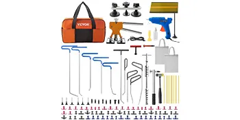 The dent removal tap-down tool with 9 different specifications of the head is excellent for various dents. Perfect for fixing the high point. The hot glue gun and 10 pcs of hot glue sticks create your work effortlessly.