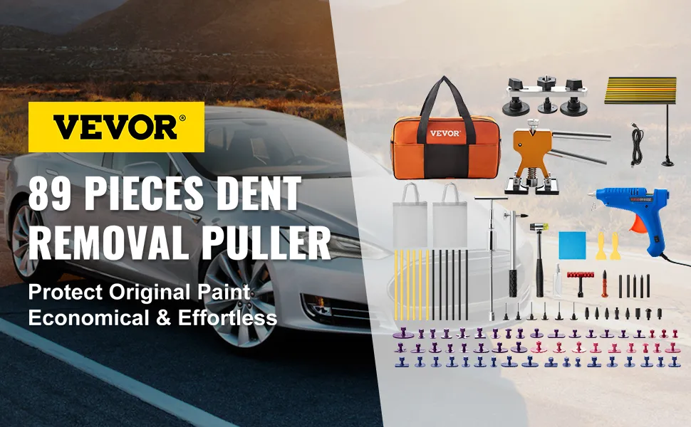 Totally 89 pcs tools, including all classic and popular dent puller tools. These pullers are made from high-quality metal and are durable enough to last you for years. 54 different sizes of dent puller tabs are designed with a new texture from specially hardened material that makes it very strong. Effectively and securely repair the dent, door nail, hail, and other damage on the metal surface without damage to the original paint.