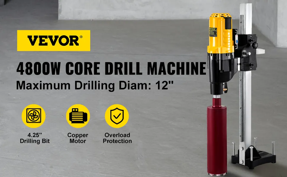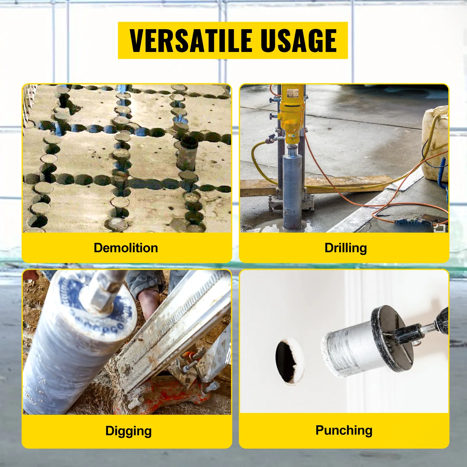 The 4800W robust motor easily loosens the reinforced concrete wall with a rotary speed of 500RPM. Included 4.25" drill bit can satisfy your daily needs.