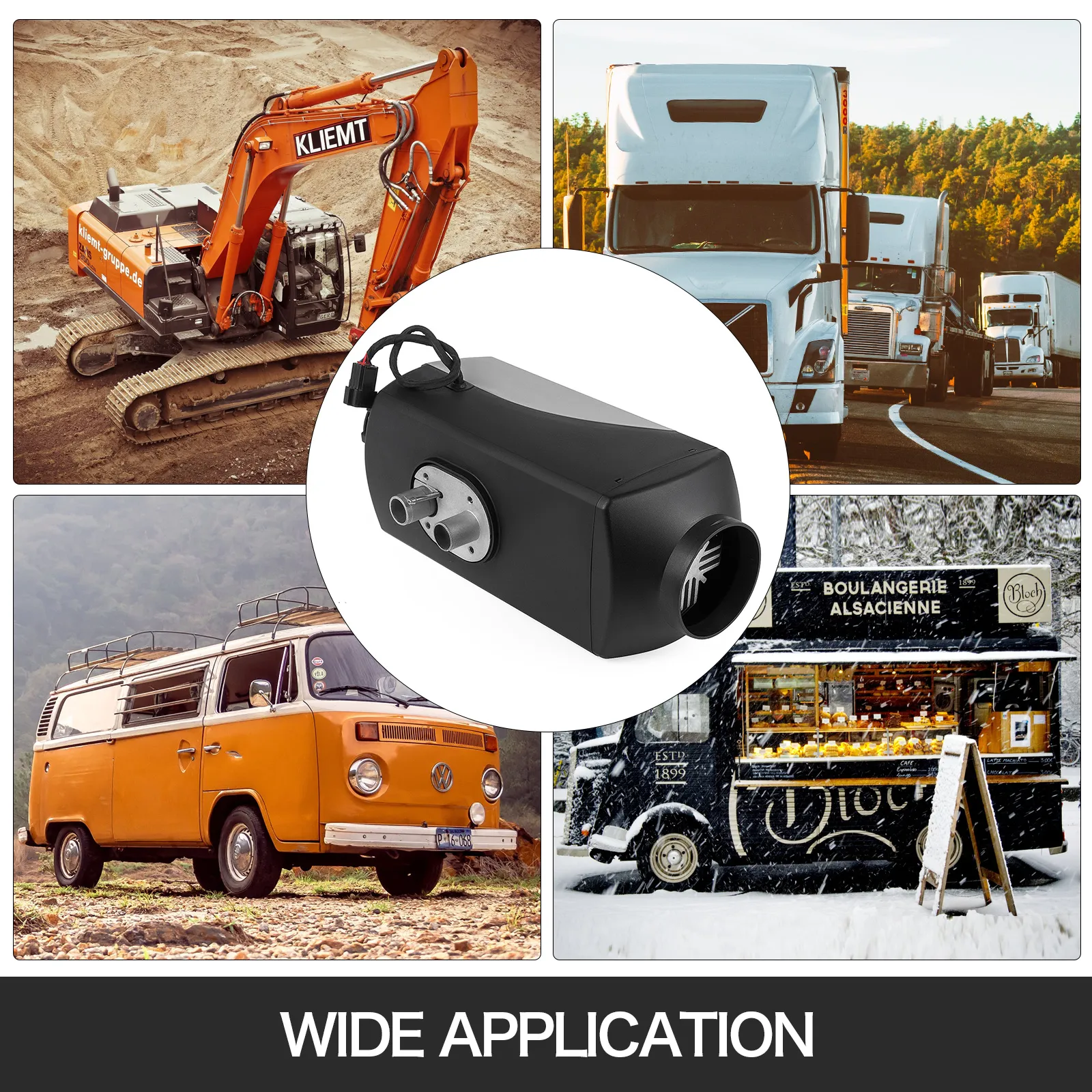 This diesel air heater can be applied for heating the cab of various diesel mechanical vehicles such as cars, buses, RVs, trucks, engineering vehicles, etc.