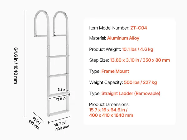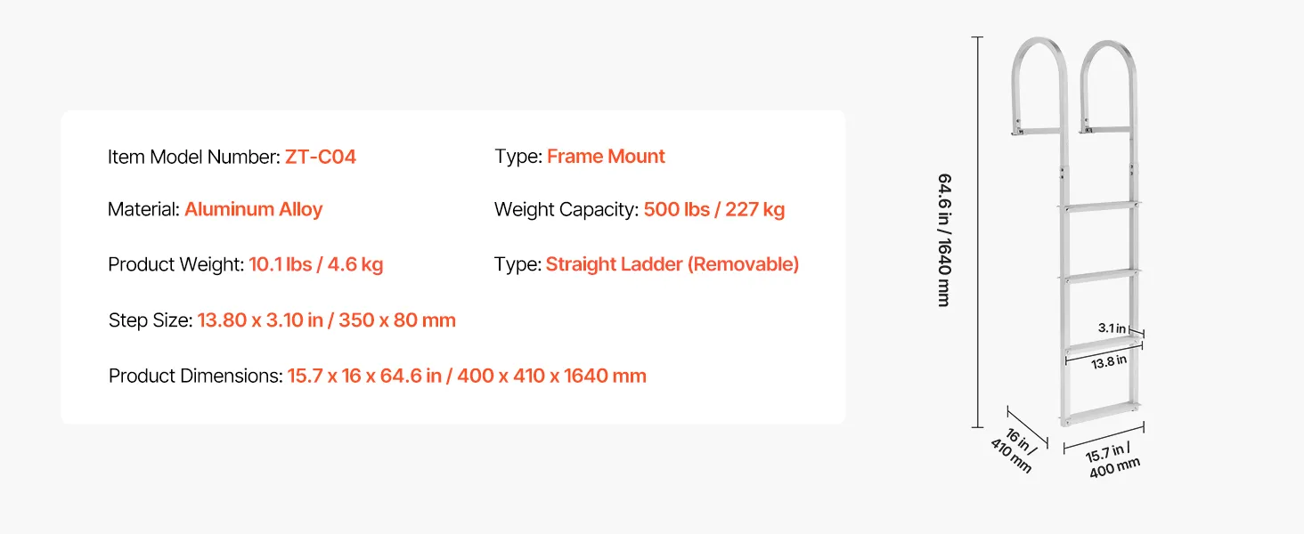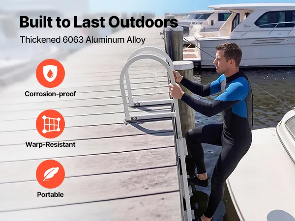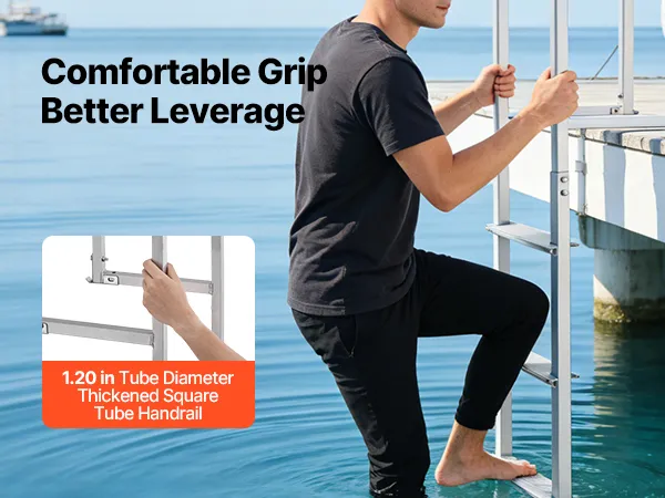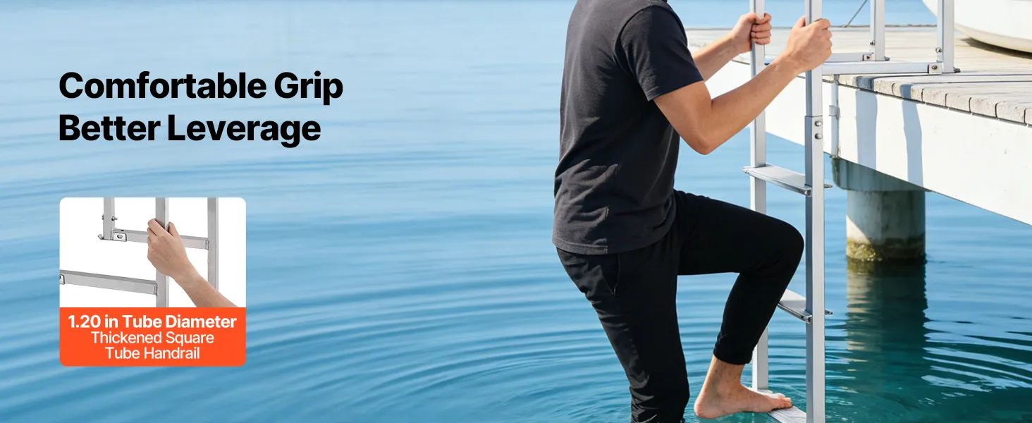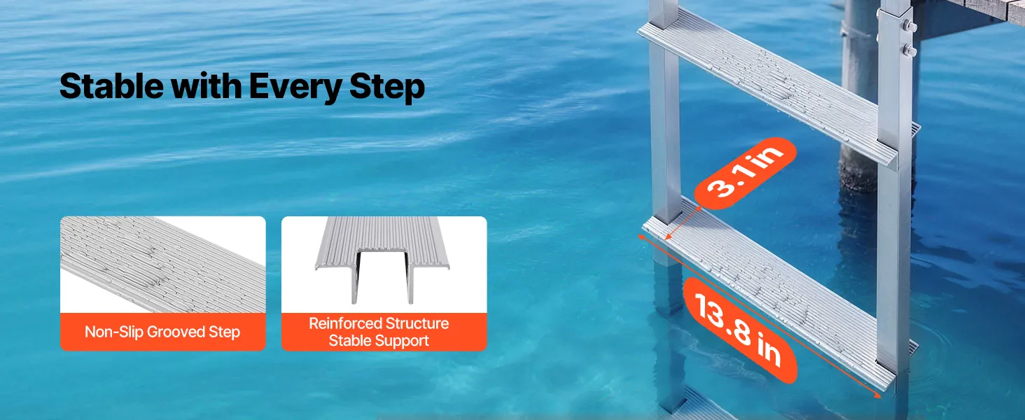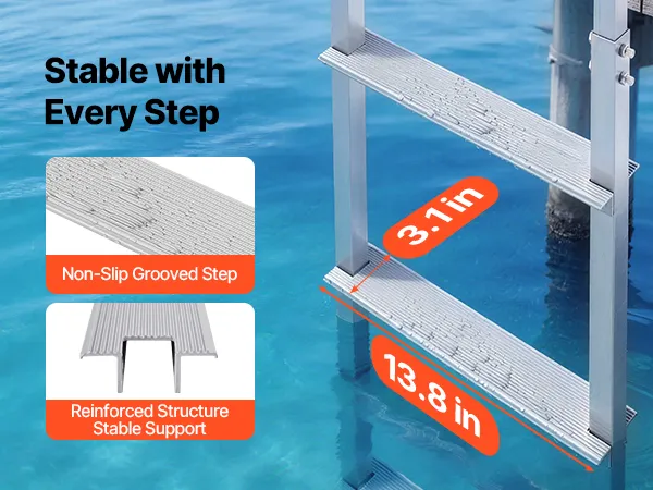 Anti-Slip Step Design: Each 13.8 in x 3.1 in aluminum alloy step features a textured surface that delivers excellent grip, even when wet or barefoot. The enhanced friction keeps your footing secure, making every climb onto the marine dock ladder confident