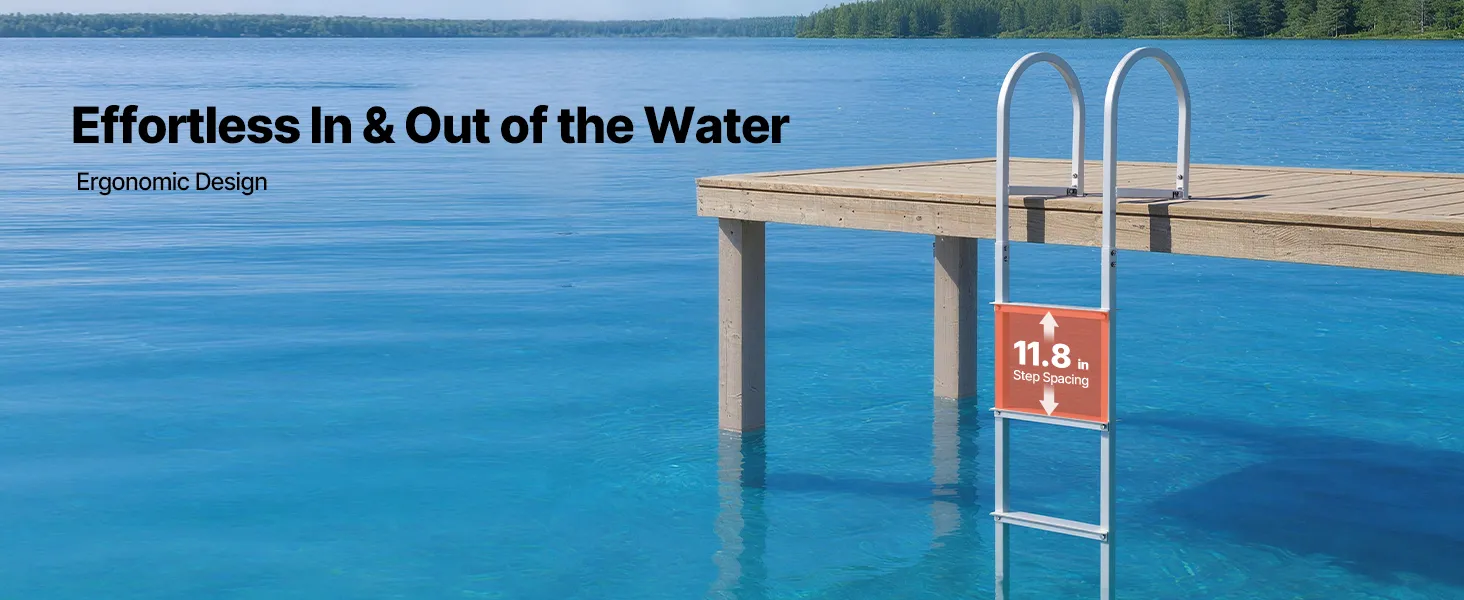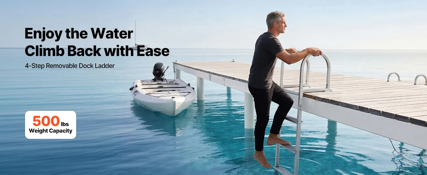 Built with an aluminum alloy frame, this dock ladder supports up to 500 lbs. Textured anti-slip steps provide secure footing even when wet or barefoot. The thoughtful step spacing and handrail make climbing in and out of the water smooth and natural. Ideal for docks, boats, or pools.
