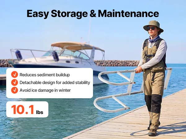 Quick-Detach Convenience: The boat dock ladder features a buckle design that keeps it in place during use to reduce accidental slipping. It allows fast removal, making it easy to take off the dock for storage without leaving it on the dock long-term
