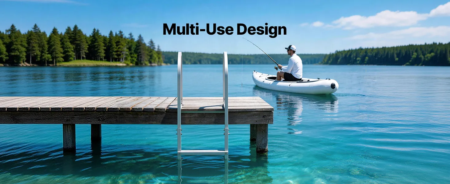 Multi-Scenario Use: Compatible with docks, boats, pools, and more, this dock ladder is ideal for swimming, boarding, fishing, and other water activities. Its hook design fits most common dock structures, making it versatile for multiple applications