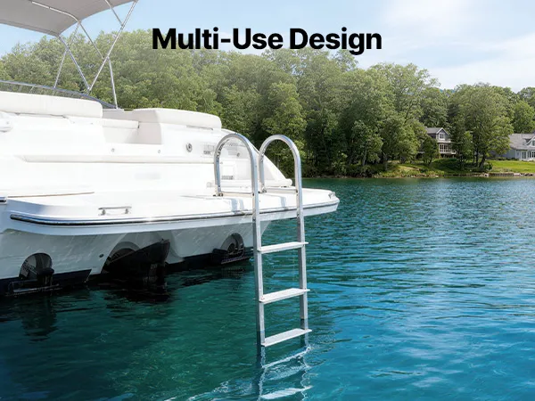 Weather-Resistant Durability: Built with an aluminum alloy frame and stainless steel hardware, this pontoon boat boarding ladder resists corrosion and withstands long-term outdoor use. It handles sun exposure, humidity, and water environments