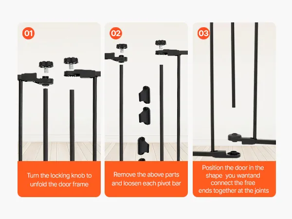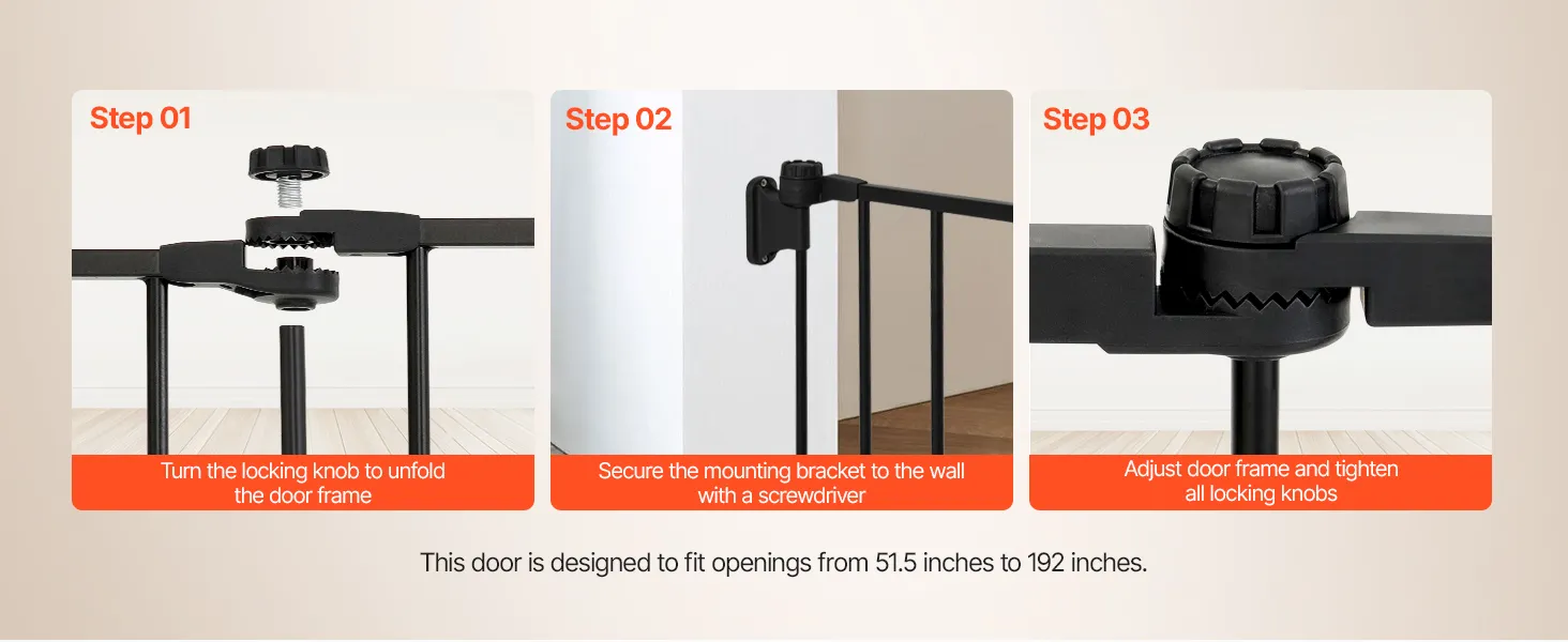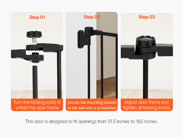 One-Handed Door Operation: The unique double-lock design not only ensures security but also allows for one-handed operation. You can easily open and close the dog gate indoor with one hand while holding your baby, making it simple and convenient when managing your little one