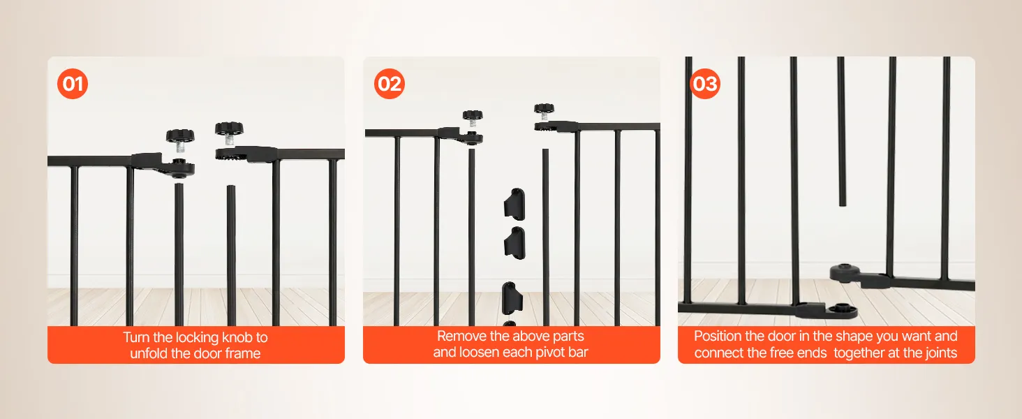 Featuring an eight-panel design, you can freely combine and adjust the width to fit various settings. It provides full protection to avoid babies from accidental injury and unauthorized door openings. Create a security environment for your baby, ensuring complete peace of mind.