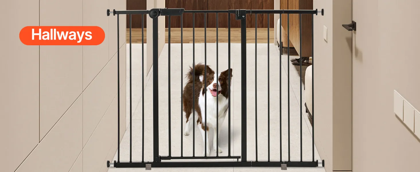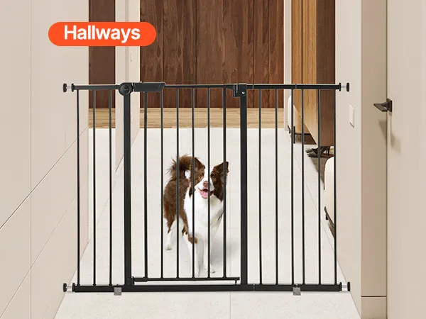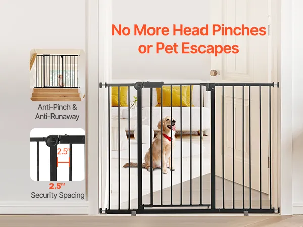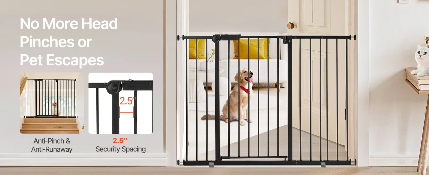 Featuring 2.5" narrow bar spacing, the dog gate effectively avoids babies from slipping their heads through gaps, reducing injury risks. It also keeps pets from squeezing through the bars, ensuring the security of both children and animals.