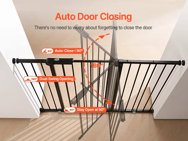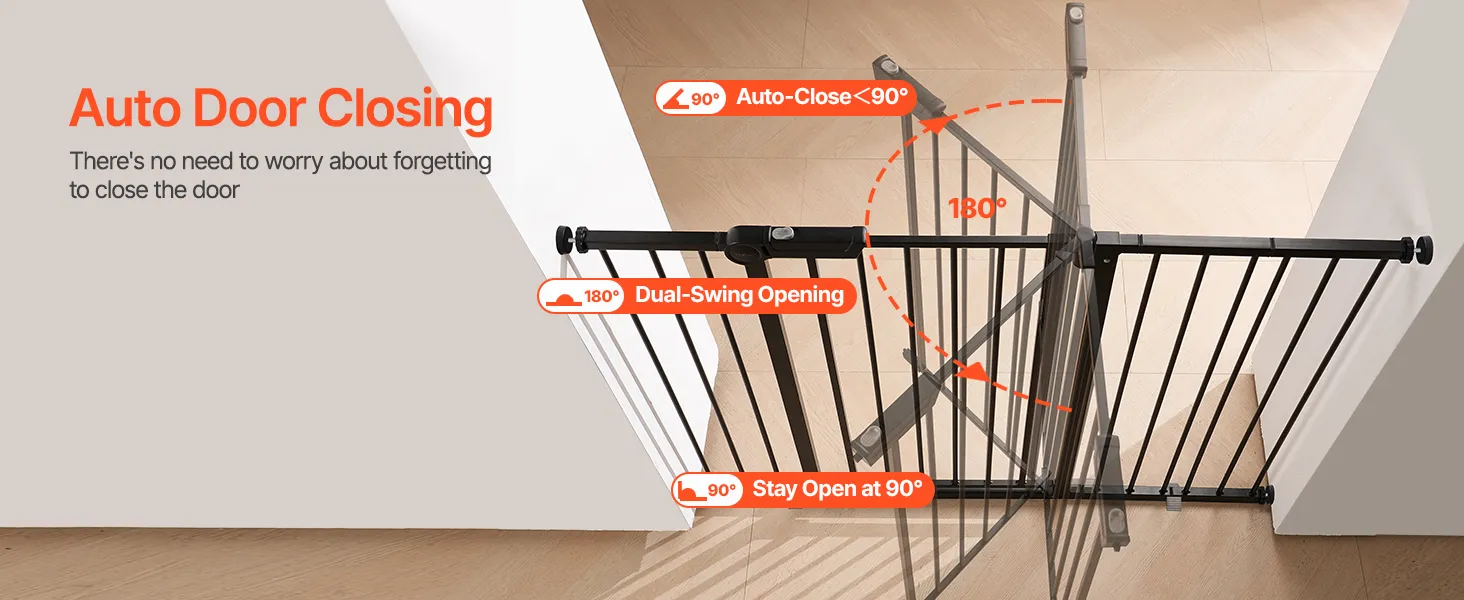 Auto-Close Feature: If the door is pushed open and the angle is less than 90°, it will automatically close, reducing the risk of accidents from a forgotten door, and helping to avoid potential dangers for your baby when unsupervised