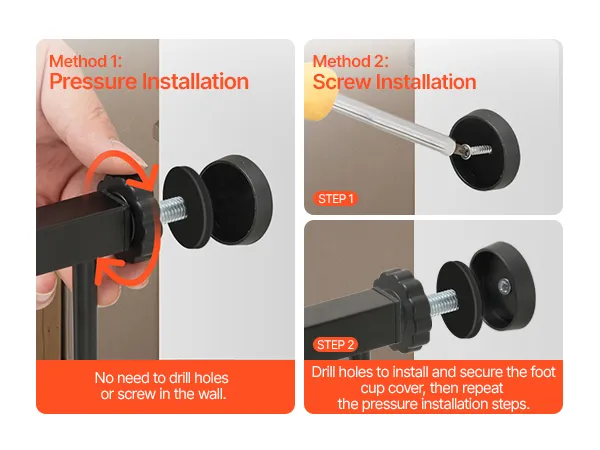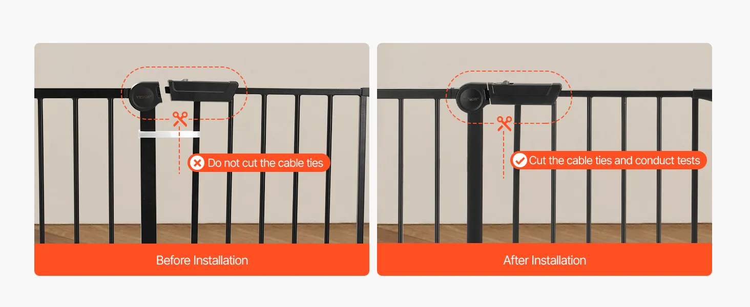 One-Handed Door Operation: The unique double-lock design of the pet gate not only ensures security but also allows for one-handed operation. You can easily open and close the door with one hand while holding your baby, making it convenient and stress-free when caring for your child