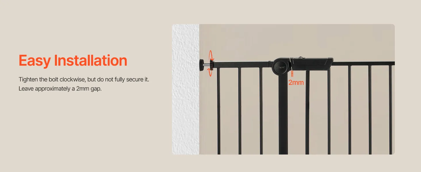 Wall-Friendly Installation: The pressure-mount installation method ensures no damage to your walls, making the dog gate ideal for newly renovated homes or spaces where wall aesthetics are a priority. Installation is quick and easy, typically completed in just a few minutes