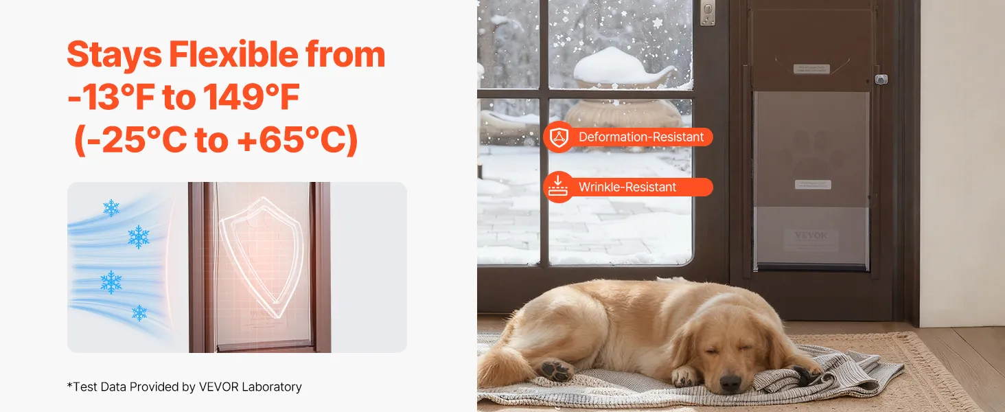 Designed with your pet's comfort and convenience in mind, this doggie door for sliding glass door ensures seamless access while maintaining the interior harmony of your home. The advanced hinge structure enhances both stability and durability preventing breakage even in low temperatures.