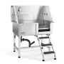 This dog grooming tub is suitable for all dog sizes. It is especially great for large breeds like Labradors. The spacious 38-inch tub can easily accommodate big dogs. The dimensions of the tub ensure that your pet has enough room to move. Stainless steel construction supports heavier pets without any issues. The design guarantees that even giant dogs feel secure. This makes the groomer process smoother and less stressful. It is an ideal choice for pet owners with big dogs.