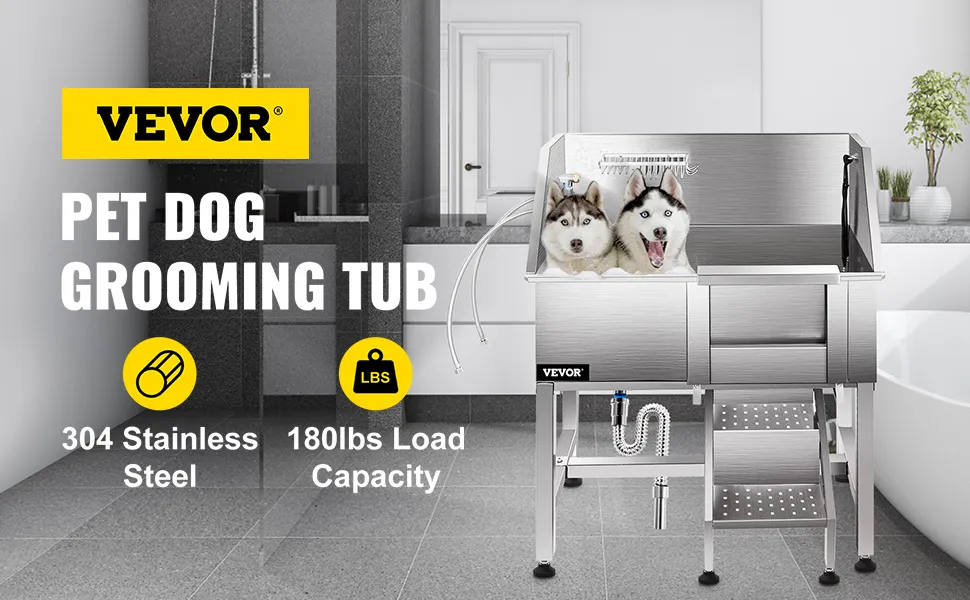 The pet washing station is made of stainless steel, enabling the grooming tub to hold up to 180 lbs load. With the sturdy structure, you can bath for your pet's peace of mind.