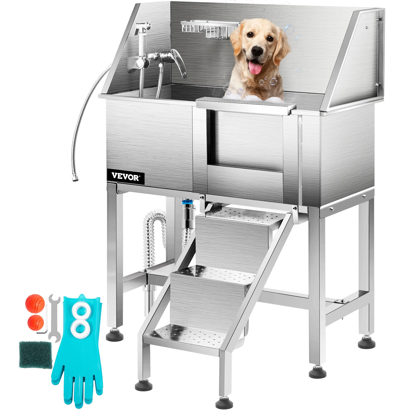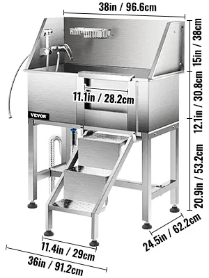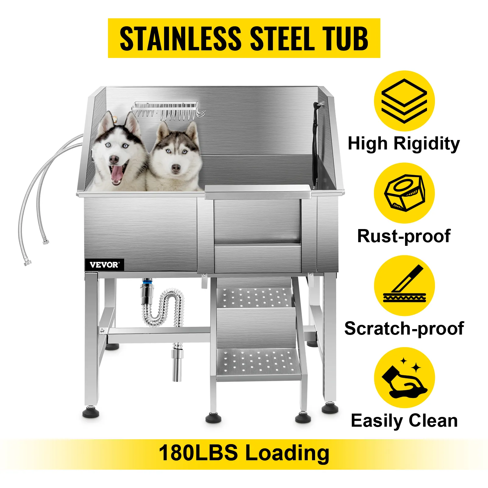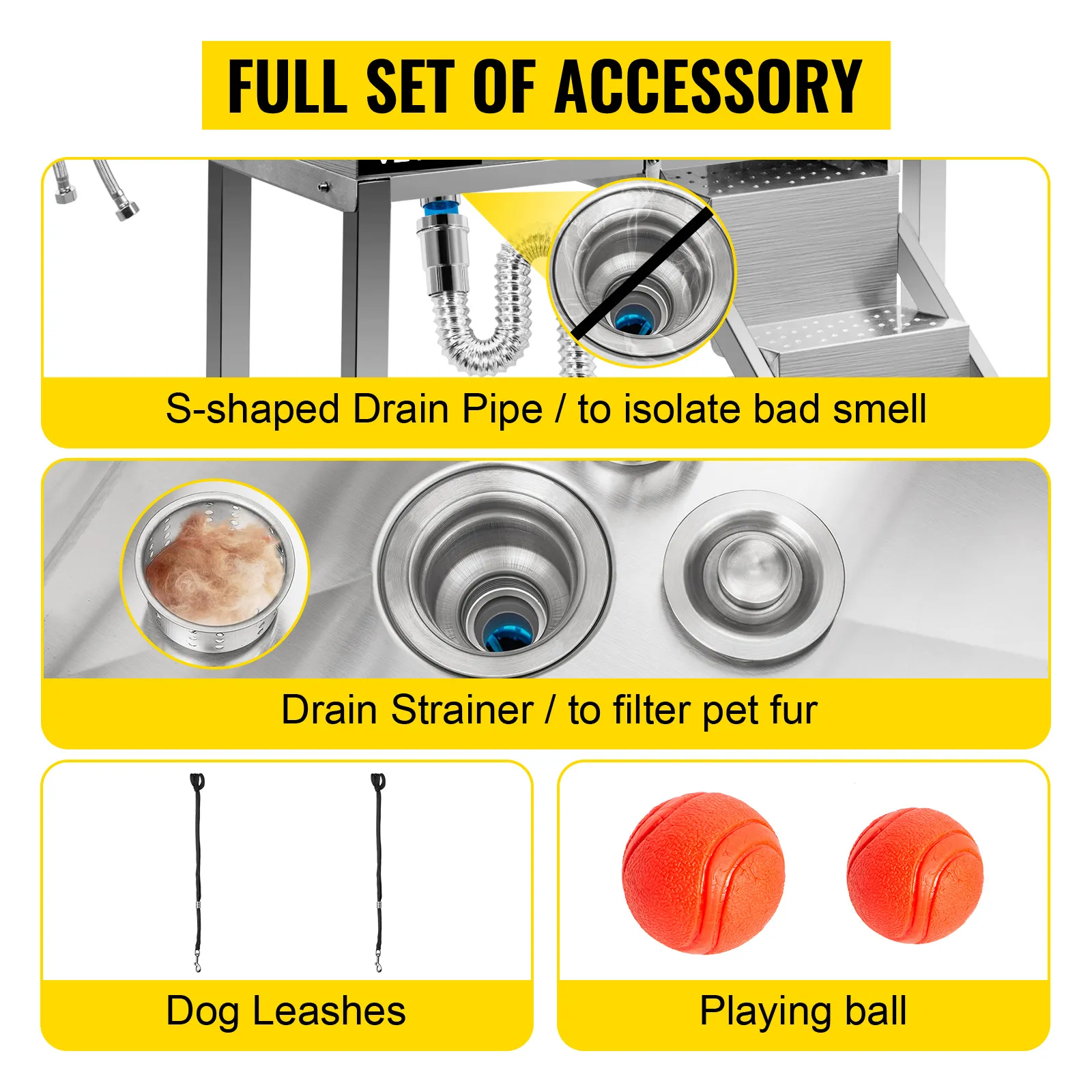 This professional pet dog grooming tub is designed to help you handle the shower of a human's best friend--pet dogs. 201 stainless steel structure makes it shiny, elegant, and durable. It comes with everything you need to make bathing a more relaxed and fun affair. There is no more trouble bathing your pet at home, pet hospital, or pet beauty salon with our pet bathtub.