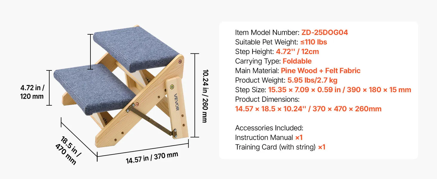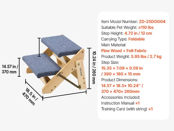 Easy for Pets to Accept: Struggling with pets refusing to use steps? The pet stair features reduced 12 cm step height that creates a gentle, natural incline. Use the included training tag to encourage your pet—most adapt quickly and climb with confidence