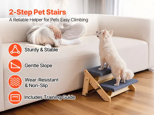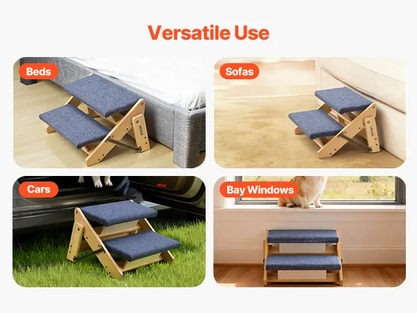 Versatile 2-Step Design: This 2-step dog stair is ideal for small to medium dogs, senior pets, or pets with limited mobility to reach beds, couches, or car seats safely and comfortably