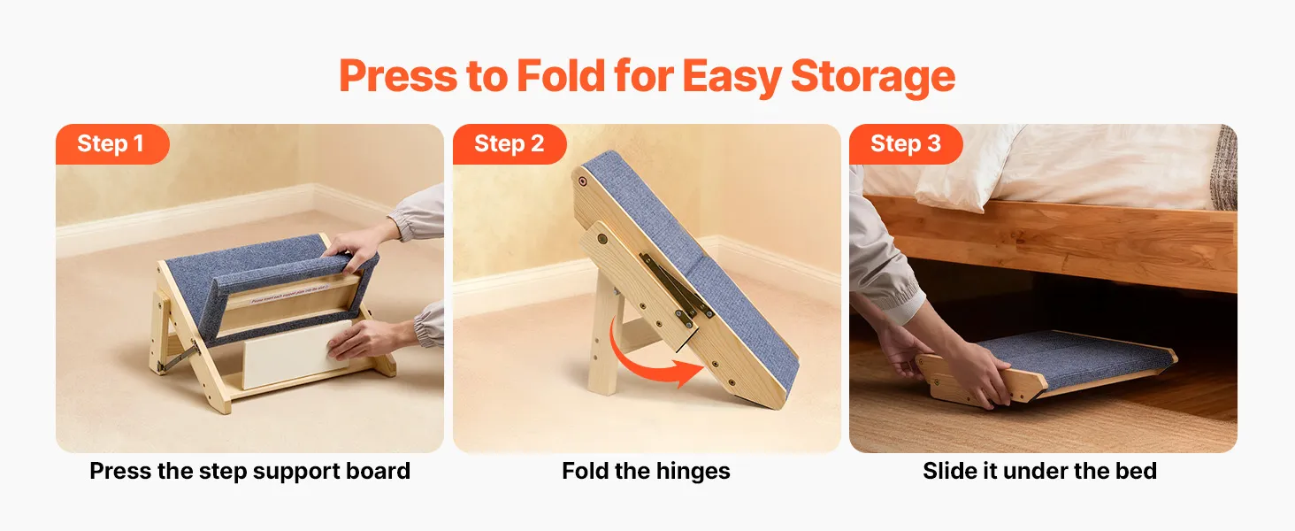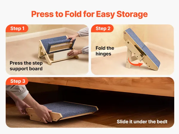 Easy to Carry and Store: The pet steps can be folded flat for compact storage and effortless transport. Easily tuck them into a car, closet, or corner of your home without taking up space