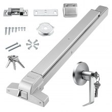 VEVOR Push Bar Door Locks, Stainless Steel Panic Bars for Exit Doors, with Exterior Lever and 3 Keys, Push Bar Panic Exit Device Door Hardware for Metal Wood Door, for Left and Right Handed Doors