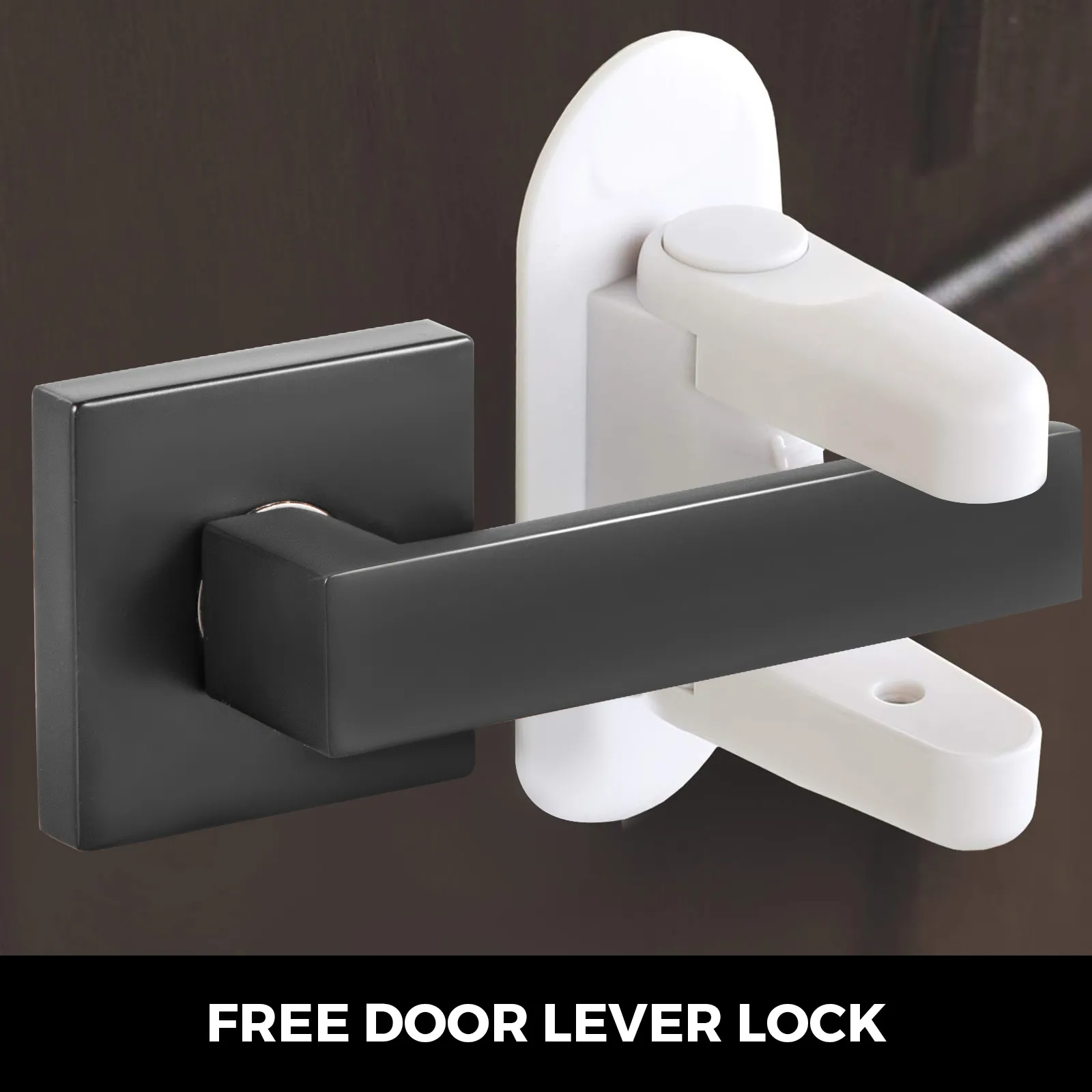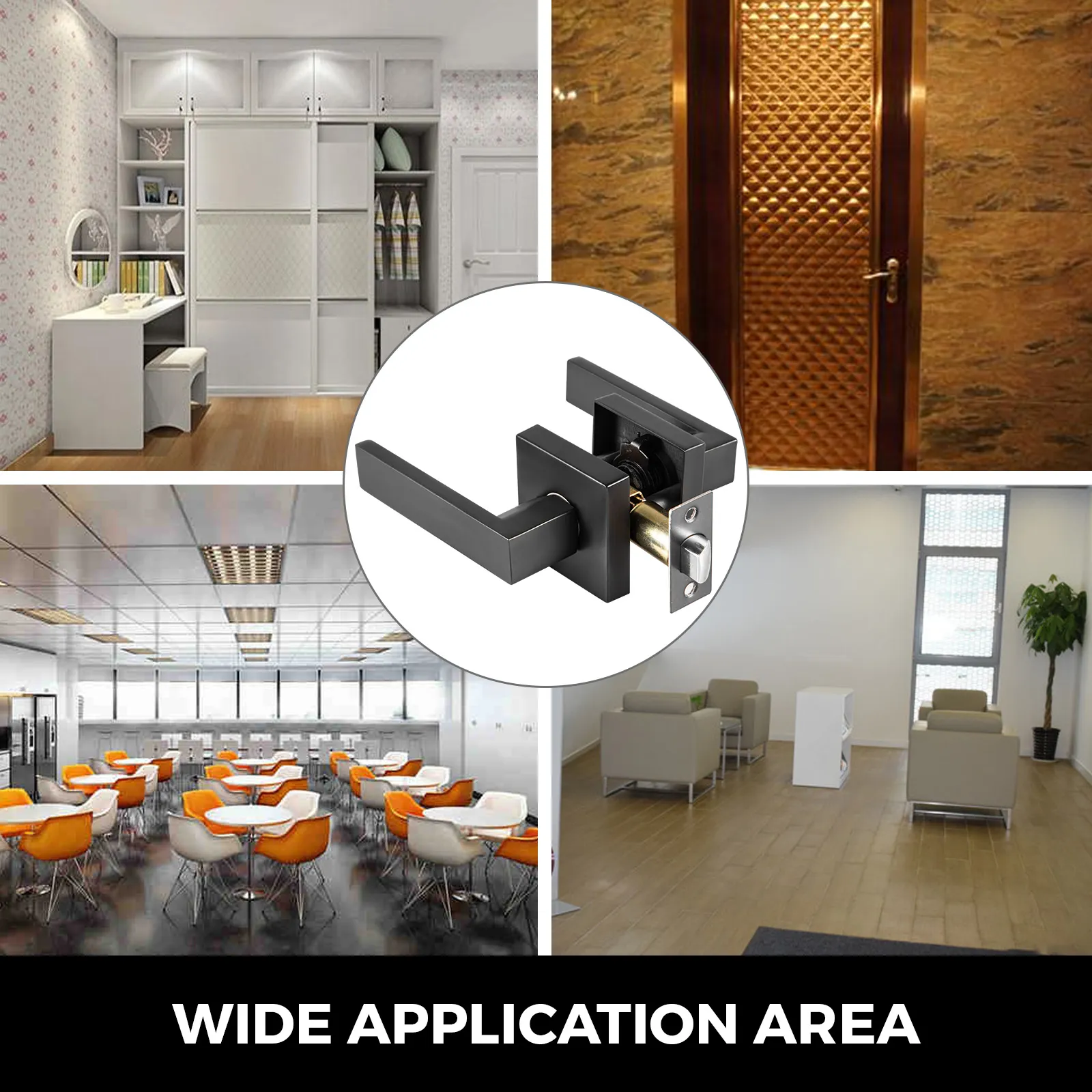 The door lock passage lever features a special square-styled, with a modern black finish. Ideal for doors in hallways, closets, and other rooms where a key is not necessary. The closet door lever is fully reversible for installation on both sides of the door.