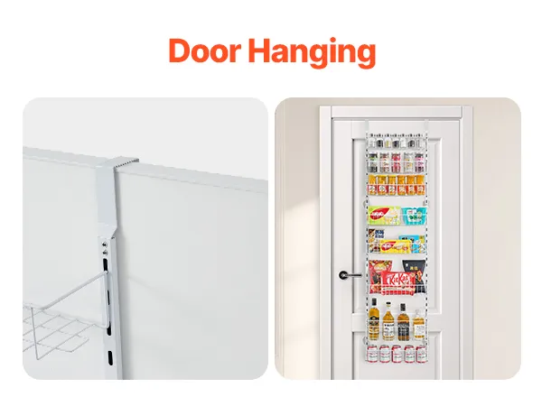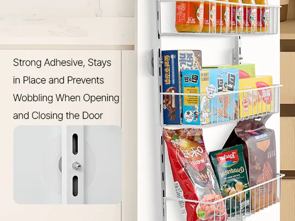Adjustable & Easy to Install: This pantry organization and storage rack features adjustable basket spacing to accommodate items of different heights. You can hang it on the door or use the included screws to mount it on the wall, with assembly completed in just a few minutes