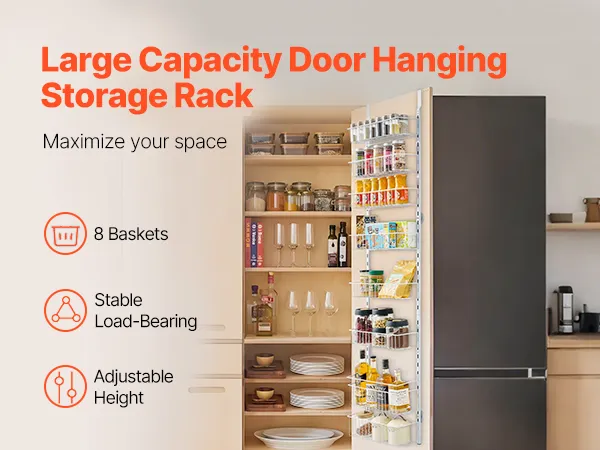 This over the door pantry organizer features 8 large baskets, maximizing your storage capacity! You can use it as a pantry door organizer, spice rack, or closet storage organizer—perfect for small spaces.