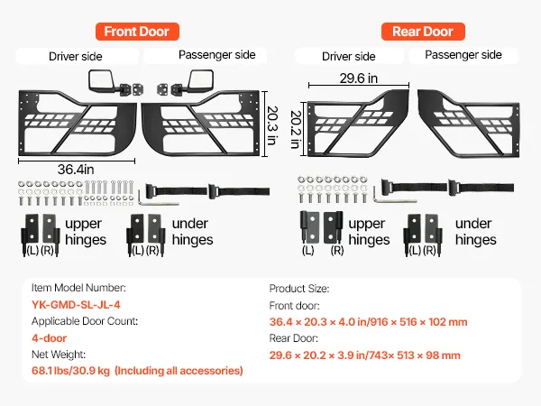 Heavy-Duty Steel Construction: Built with reinforced steel tubing and finished with an electrophoretic and textured coating, these doors provide exceptional durability and corrosion-resistance. Ready to withstand sand, rocks, and rain, they are your trusted companion for outdoor adventures.