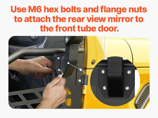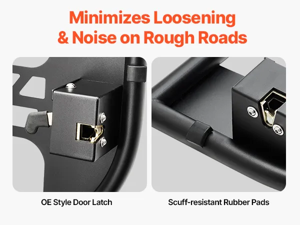 OE Latch with Rubber Pads: The jeep tube door’s heavy-duty latches ensure a secure fit with the factory door locking system for smooth operation. Upgraded thick rubber pads avoid scratches when opening and closing while lowering rattling noise on rough terrain and at high speeds.