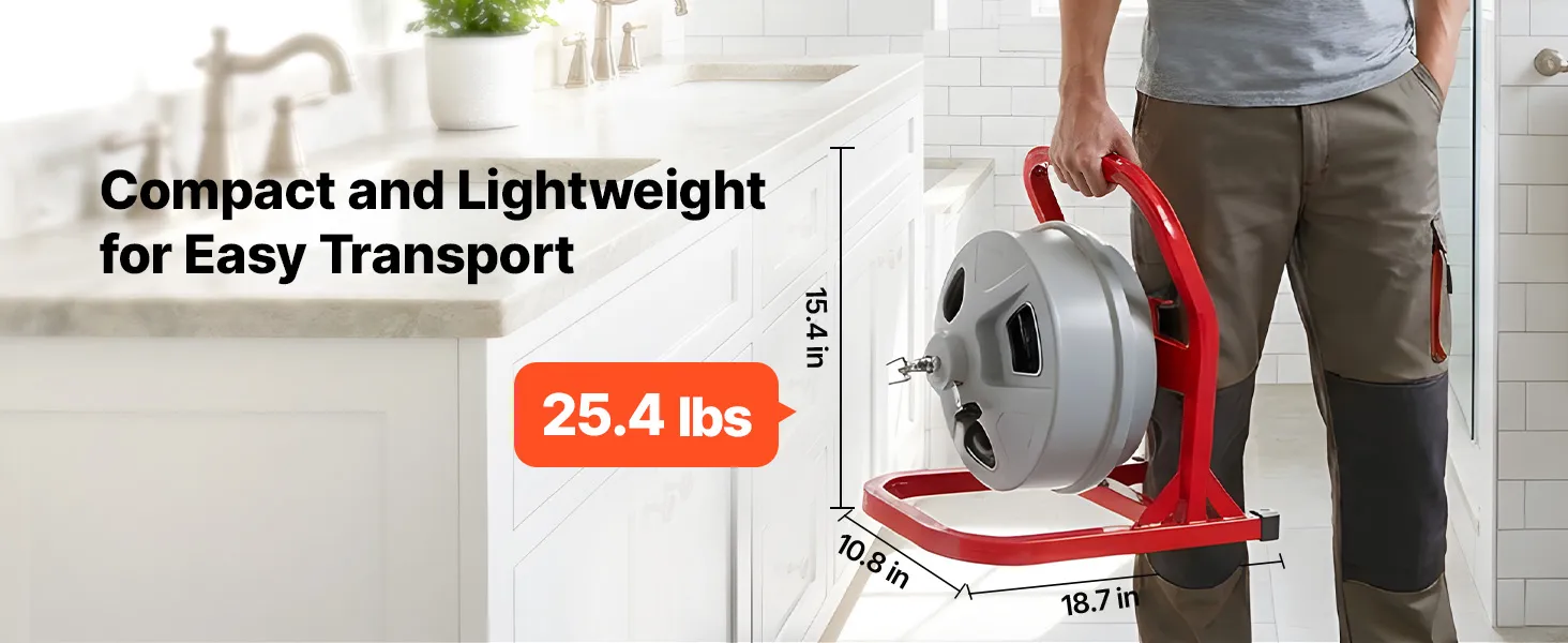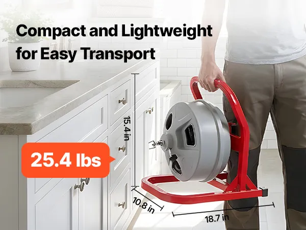 Durable & Convenient Use: Our drain cleaning machine features a durable plastic drum that keeps the cable neatly organized. Lightweight body, ergonomic handle make it easy to carry and transport, and the included GFCI switch reduces electric shock risk
