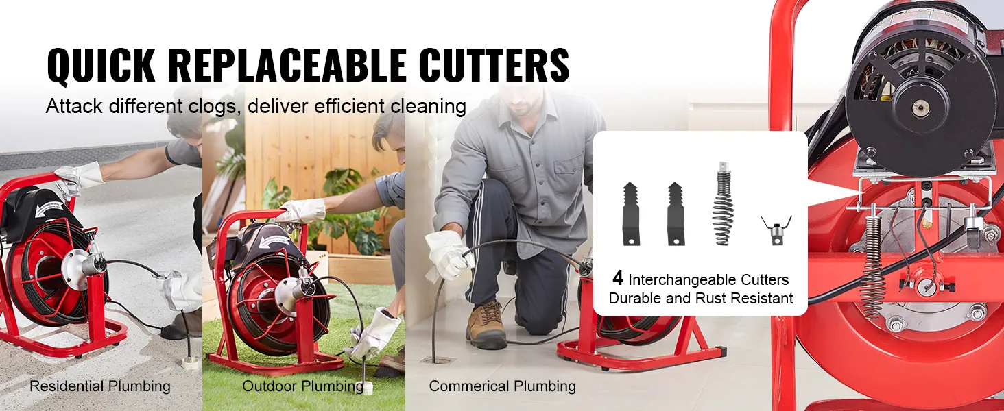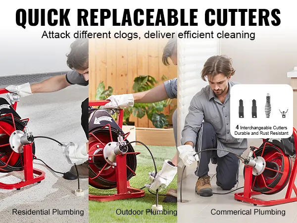 Get the job done with efficiency with our 4 interchangeable cutters. Whether for commercial plumbing, residential use, restaurants, factories, or schools, VEVOR sewer drain auger provides versatile solutions for a wide range of applications.